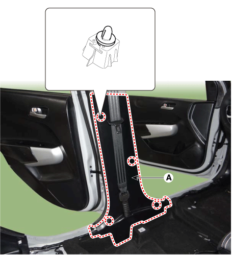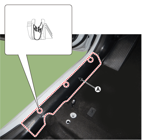 Снимите накладку порога задней двери (А) после ослабления винтов.