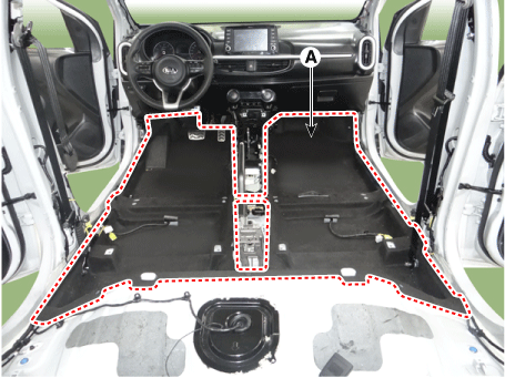 С помощью съемника снимите обшивку порога (А) передней двери.