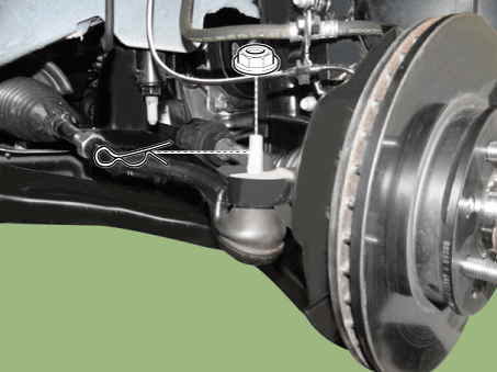 Снимите штифт и гайку с шарового шарнира наконечника рулевой тяги.