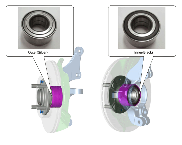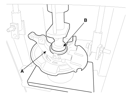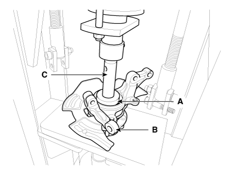 Снимите внешнее кольцо подшипника ступицы с поворотного кулака в сборе.
