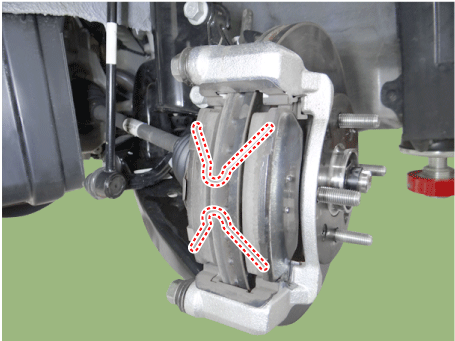Проверьте износ колодок. Измерьте толщину колодки и замените ее, если она меньше указанного значения.