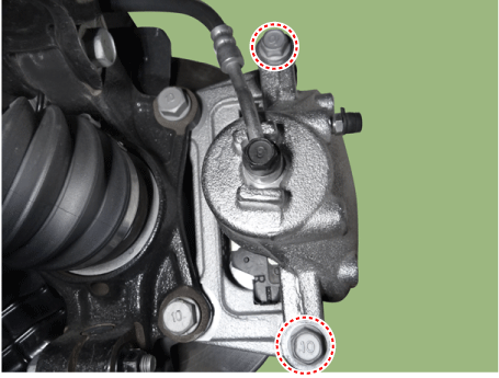 Ослабьте болты суппорта, а затем снимите элемент суппорта.
