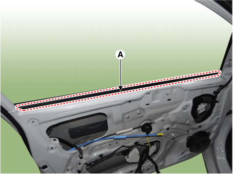Снимите ремень передней двери внутри уплотнителя (А).