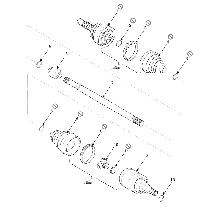 Руководство по ремонту и обслуживанию Kia Picanto JA 2017-2023 гг. / Карданный вал и ось / Сборка карданного вала / Передний карданный вал