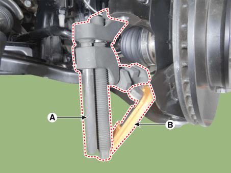 Снимите передний нижний рычаг с переднего поворотного кулака с помощью SST (0K545-A9100).