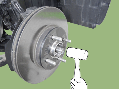 Используя пластиковый молоток, отсоедините карданный вал от ступицы оси.