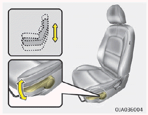 Чтобы изменить высоту подушки сиденья, нажмите рычаг, расположенный на внешней стороной подушки сиденья вверх или вниз.