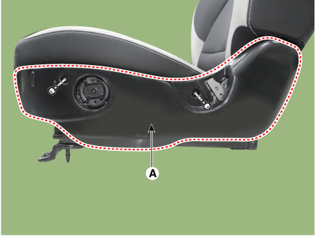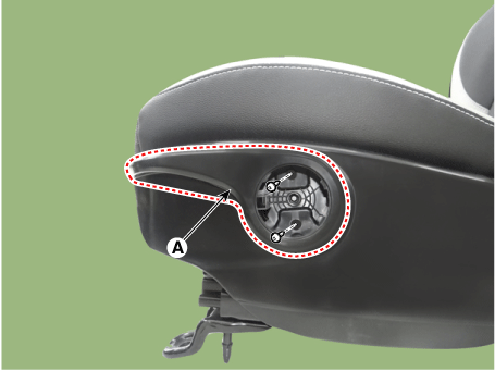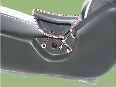 Снимите наружную крышку кожуха переднего сиденья (А) после ослабления крепежных винтов.