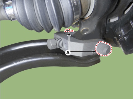Сняв болты с переднего поворотного кулака, установите и затяните болт (А) опоры кузова.
