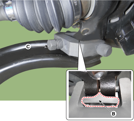 Затяните болт (C) вспомогательного кузова, чтобы увеличить зазор переднего поворотного кулака.