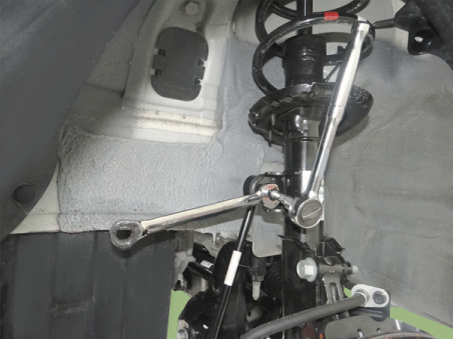 При ослаблении гайки зафиксируйте внешний шестигранник тяги стабилизатора поперечной устойчивости.