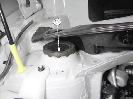Снимите изолятор, седло пружины, цилиндрическую пружину и пылезащитный чехол со стойки в сборе.
