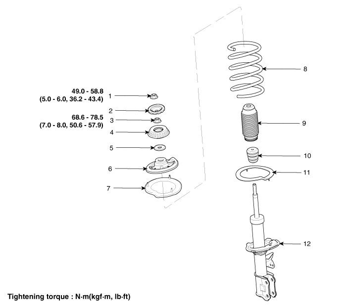 8. Спиральная пружина 9. Пылезащитный чехол 10. Резина бампера 11. Пружинная нижняя накладка 12. Амортизатор |