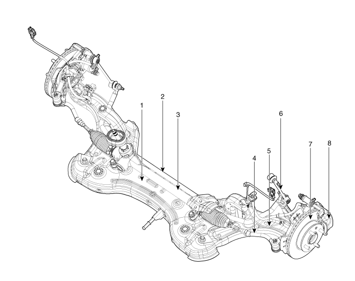 6. Звено стабилизатора 7. Тормозной диск 8. Тормозной суппорт |