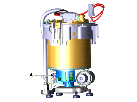 Нажмите на фиксирующий крюк (А) отверткой и снимите датчик уровня топлива в направлении стрелки.