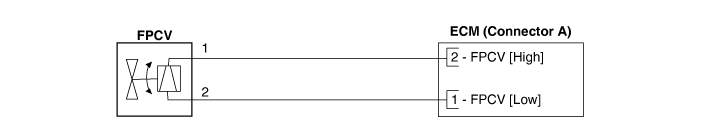 Измерьте сопротивление между выводами 1 и 2 клапана управления давлением топлива.