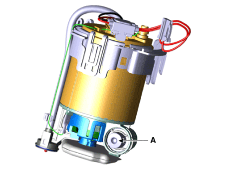 Отсоедините разъем электродвигателя топливного насоса (А) и разъем датчика уровня топлива (В).