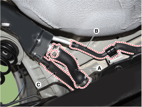 Отсоедините заливной шланг (А), выравнивающий шланг (В) и паровой шланг (С).