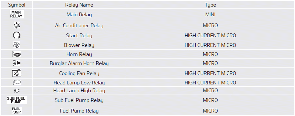 Реле (двигатель Kappa 1,0 л/1,2 л MPI (Бензин))
