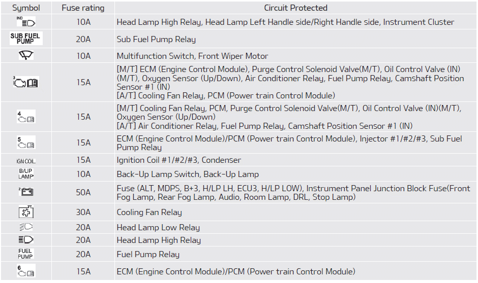 Панель предохранителей моторного отсека (Двигатель Kappa 1,0 л MPI (FFV))