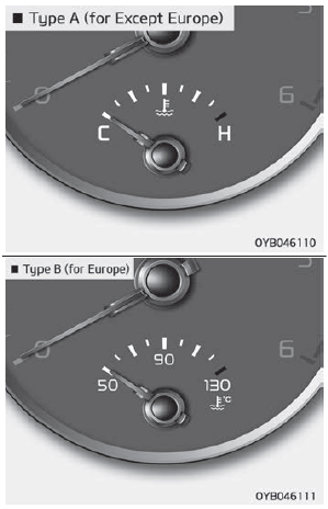 Если указатель датчика выходит за пределы область нормального диапазона в направлении Положение «130 или H» указывает на перегрев которые могут повредить двигатель.