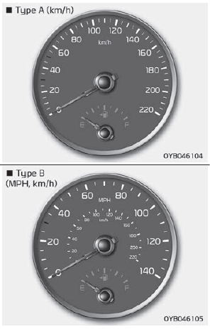 Спидометр показывает скорость транспортного средства и откалиброван в милях в час (миль/ч) и/или километров в час час (км/ч).