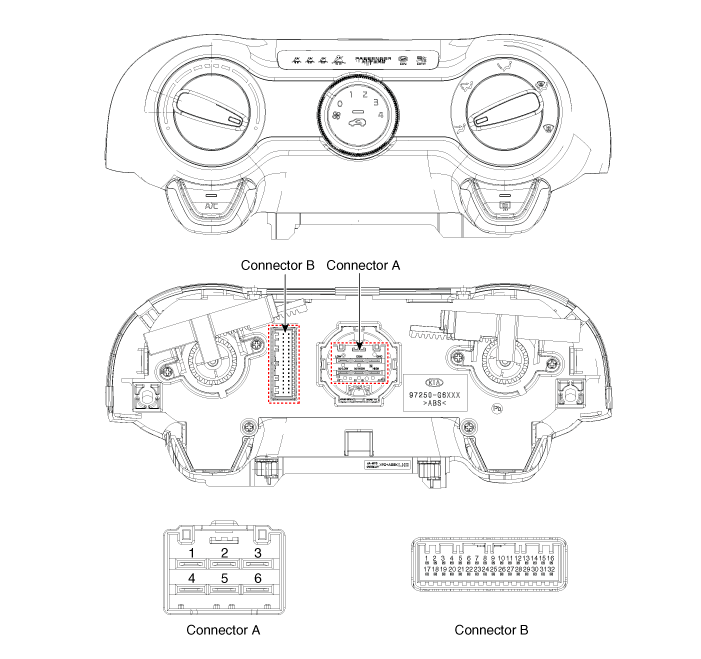 Отсоедините разъемы контроллера кондиционера и отопителя (А).