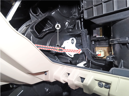 Ослабив крепежные винты, снимите блок управления кондиционером и отопителем (А).