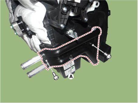 Снимите крышку радиатора отопителя (А) после ослабления крепежных винтов.