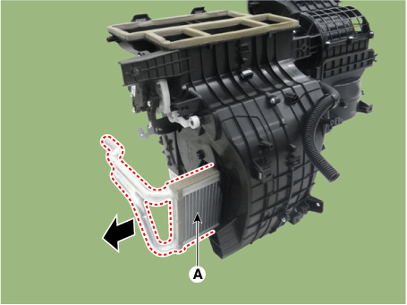 Вытяните сердечник отопителя (А) из блока отопителя.