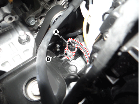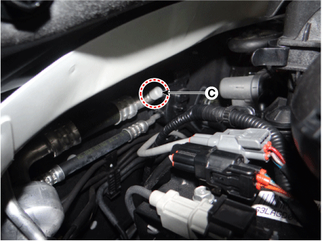 Снимите датчик давления кондиционера (В).
