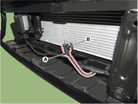 Отсоедините разъем (А) и снимите датчик температуры окружающего воздуха (В).