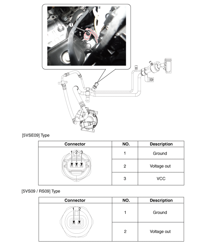 Измерьте давление в линии высокого давления путем измерения выходного напряжения между клеммами № 1 и № 2.