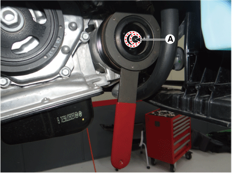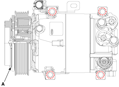 Отсоедините разъем датчика давления кондиционера (А).