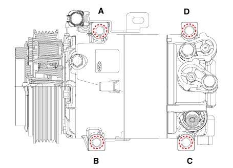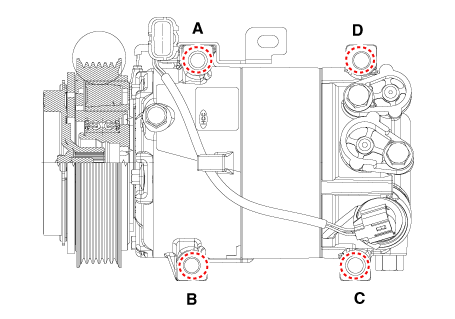 Нанесите масло компрессора кондиционера вдоль уплотнительных колец и резьбы новой нижней крышки.