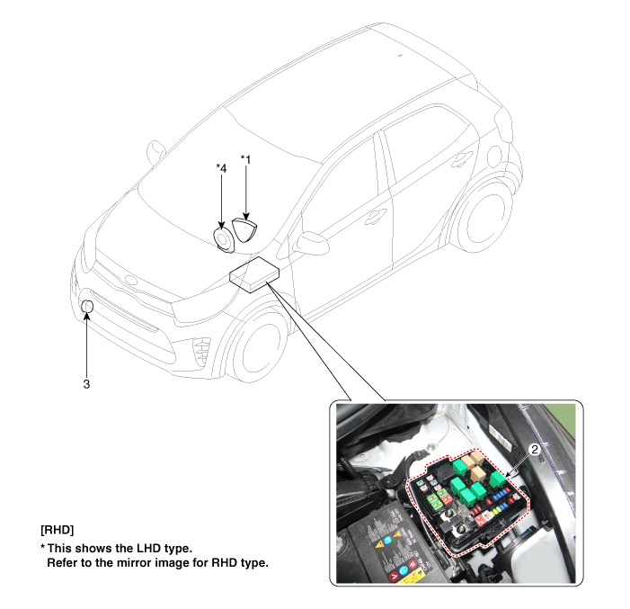 Реле звукового сигнала этого автомобиля встроено в блок реле моторного отсека.