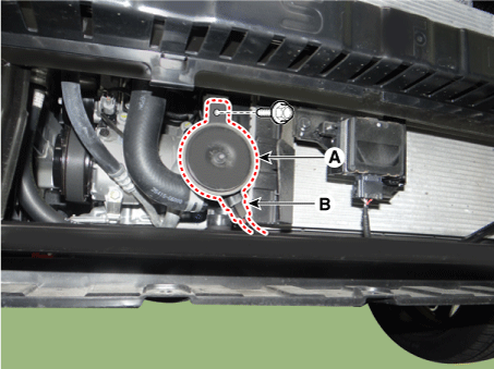 Снимите звуковой сигнал (A), отсоединив разъем звукового сигнала (B) и ослабив крепежный болт.