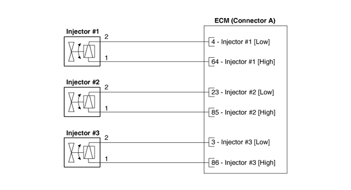 распыление топлива. ECM управляет обеими цепями подачи (высокая