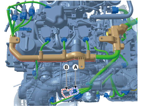 Снимите датчик (В) с впускного коллектора, ослабив крепежные винты.