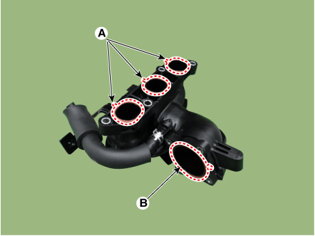 Отсоедините шланг принудительной вентиляции картера (PCV) (А) и вакуумный шланг (В).