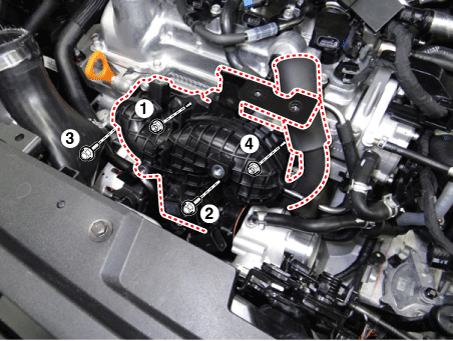 Отверните болты модуля электронного управления дроссельной заслонкой (ETC).