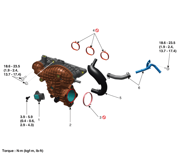 2. Впускной коллектор 3. Прокладка модуля электронного управления дроссельной заслонкой (ETC). |