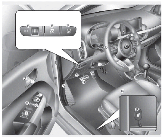 9. Рычаг открывания крышки топливного бака