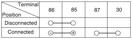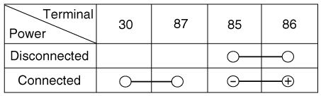 отключив питание между клеммами силового реле № 85 и 86, проверьте