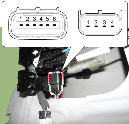 Отсоедините разъем переключателя открывания двери багажного отделения в сборе.
