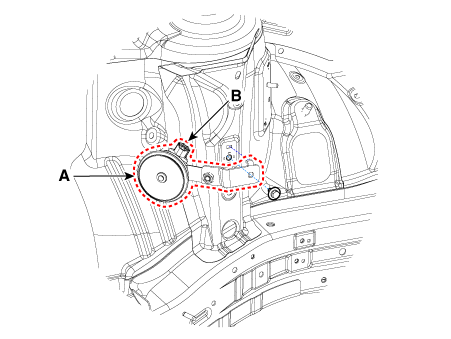 Снимите клаксон (А), предварительно ослабив крепежный болт и отсоединив разъем (В).