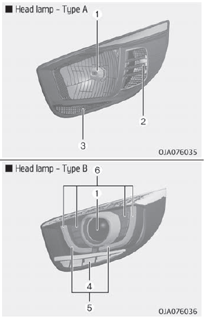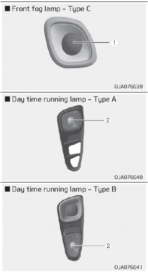 Kia Picanto: Лампочки / Положение лампочки (Спереди)