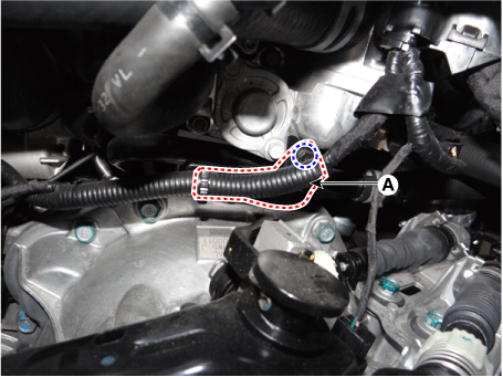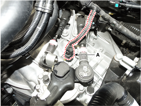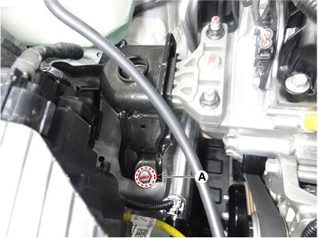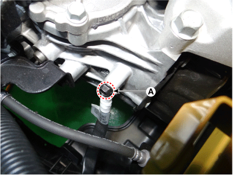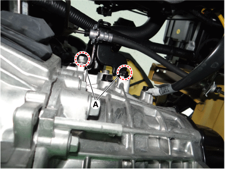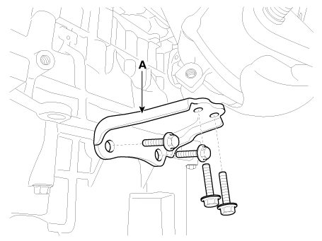 Ослабьте болты кронштейна крепления коробки передач (А).