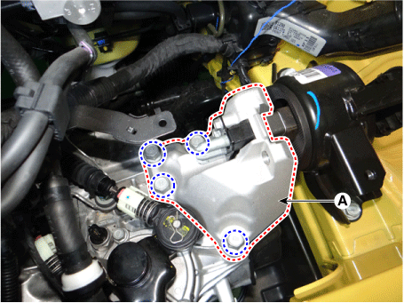 Ослабьте болты крепления патрубка промежуточного охладителя (А).