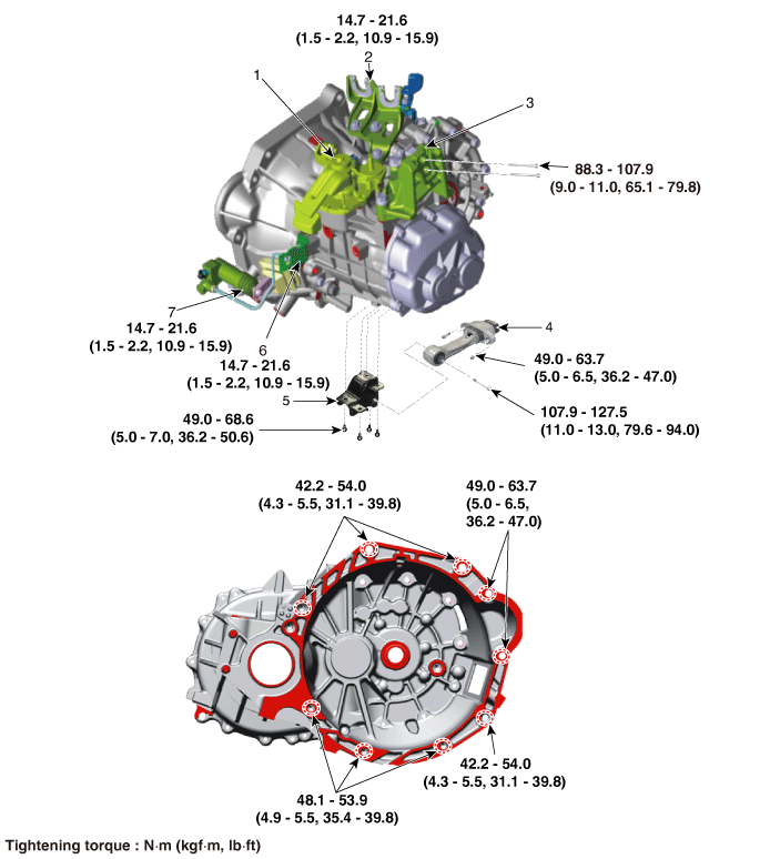 6. Кронштейн трубки сцепления 7. Цилиндр выключения сцепления в сборе |